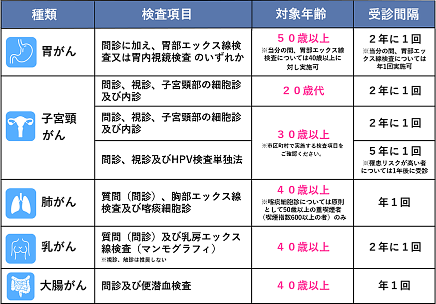 表1 国が推奨するがん検診の一覧