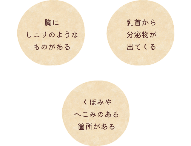 しこりが触れる、赤い分泌物が出た、など不安なことがあれば受診して下さい。必要な検査を行い、同日結果を説明いたします。